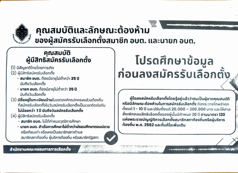 คุณสมบัติและลักษณะต้องห้าม ของผู้สมัครรับเลือกตั้งสมาชิก อบต. และนายก อบต.