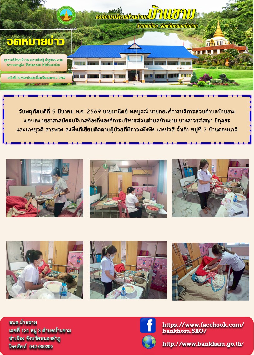 บริบาลท้องถิ่นองค์การบริหารส่วนตำบลบ้านขาม ลงพื้นที่เยี่ยมติดตามผู้ป่วยที่มีภาวะพึ่งพิง