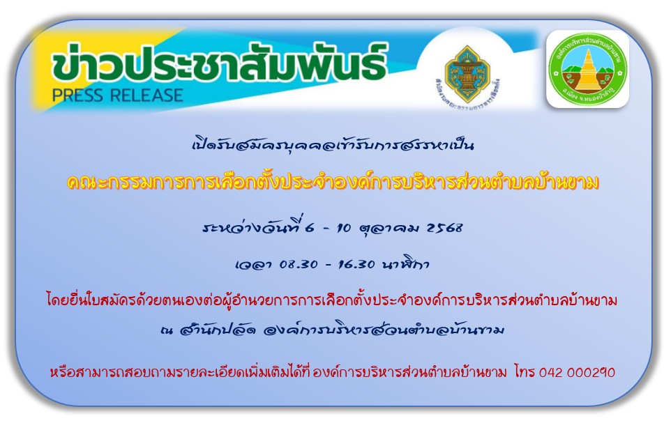 ประชาสัมพันธ์การรับสมัครบุคคลเข้ารับการสรรหาเป็นคณะกรรมการการเลือกตั้งประจำองค์การบริหารส่วนตำบลบ้านขาม |